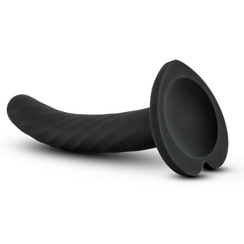 Черный анальный фаллоимитатор на присоске Twist Small. Может использоваться как насадка для трусиков с фиксацией насадок кольцом.