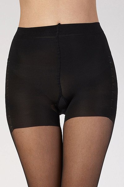 Колготки с утяжкой живота и бедер полностью сформированные, шортики украшены боковым плетением, имитирующим шнуровку, красивое плетение, плоский шов, ластовица из хлопка . Плотность - 15 ден.