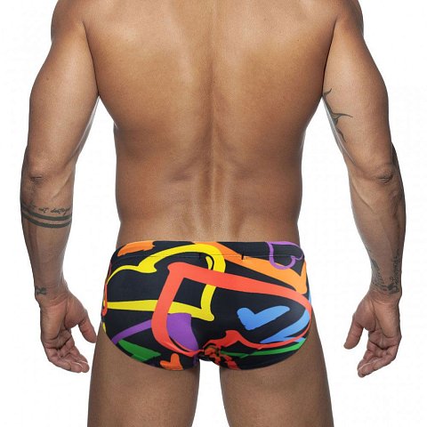 Отзывы о Черные мужские плавки с принтом в виде крупных разноцветных сердец