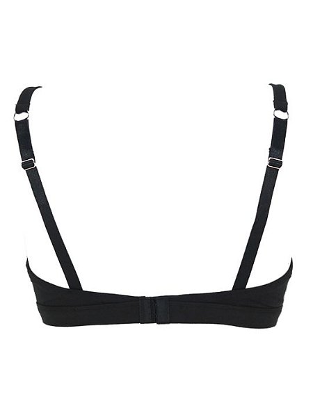 Бюстгальтер-топ с мягкими двухслойными чашками, без косточек. Съемные формованные вкладыши без пуш-ап. Бретели несъемные, регулируемые. Застежка в два ряда на три позиции.