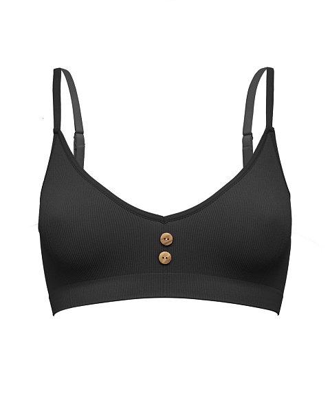Эко-бюстгальтер-браллет в мелкий рубчик на регулируемых бретелях, украшенный пуговками, комфортный, гипоаллергенный, бесшовный, изготовлен из нитей, которые полностью разлагаются в почве в течение 3-х лет после использования, новые технологии производства.