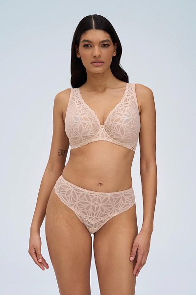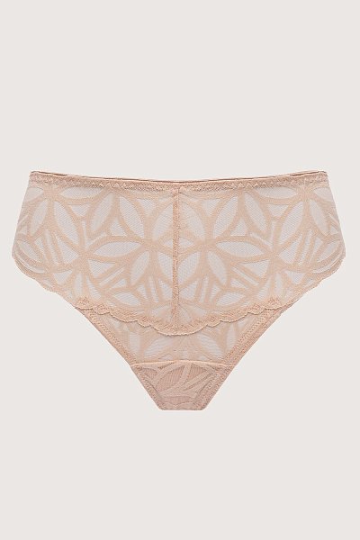 Трусики-стринги с завышенной талией Sugar Dune выполнены из роскошного кружева с геометрическим узором. Ластовица проложена 100% хлопком телесного цвета. Натуральная палитра делает бельё практически невидимым на коже, а плоское плетение кружева гарантирует его незаметность под одеждой, геометрический узор кружева напоминает мягкие линии дюн, созданных из карамельно-пудрового песка. Внимание: европейские размеры! Для определения российского размера необходимо прибавить 6!